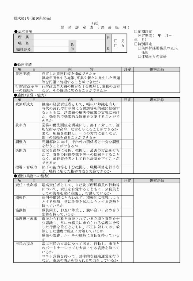 (1) 課長級 勤務評定表(課長級用)(様式第1号)