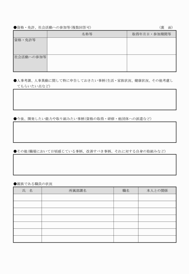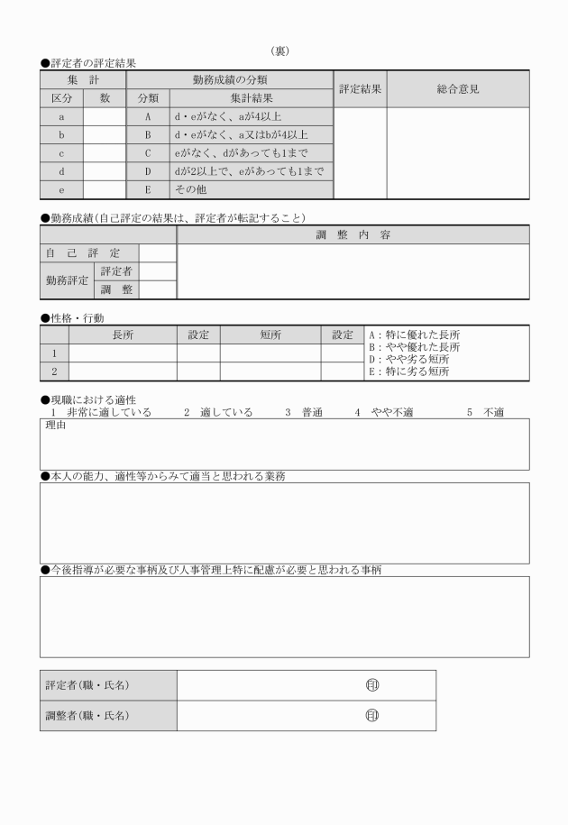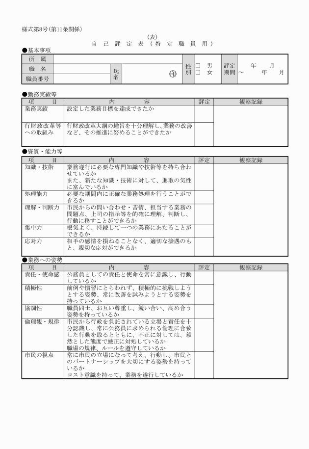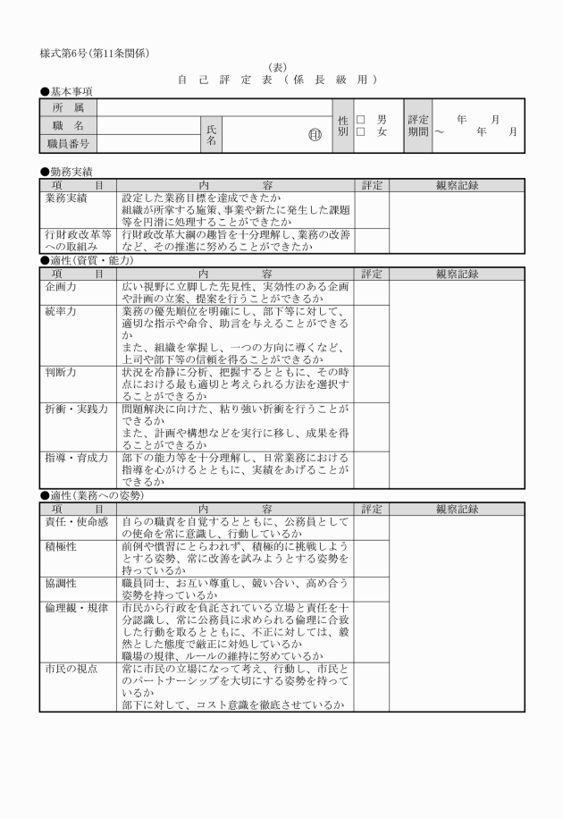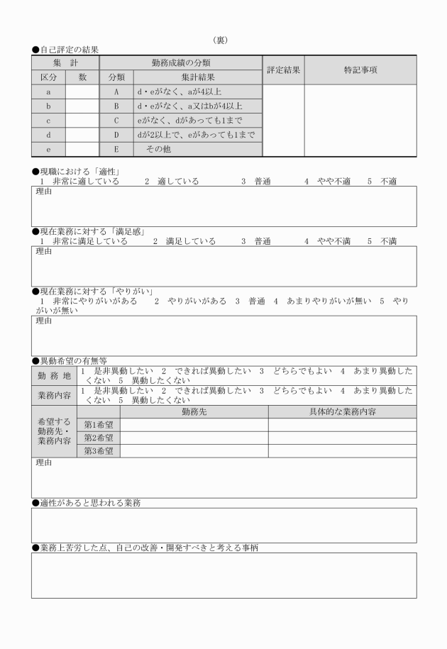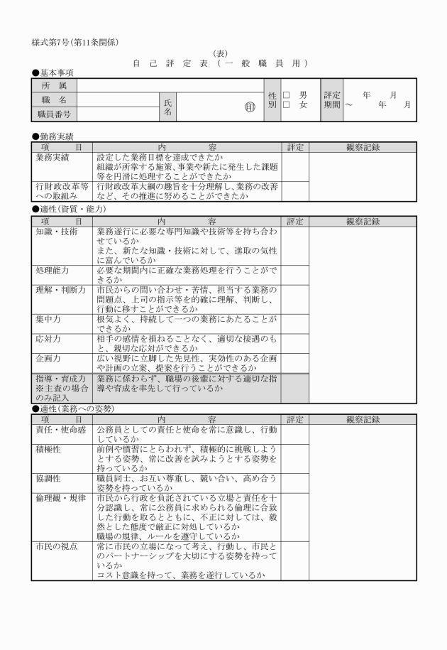 第7条 勤務評定を補完するため、身上報告及び自己評定を実施する。