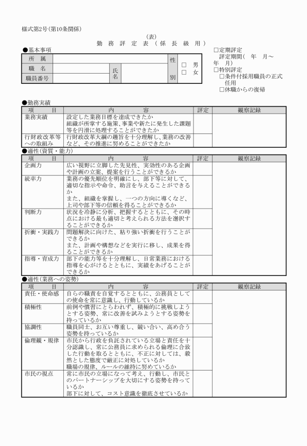 (2) 係長級 勤務評定表(係長級用)(様式第2号)