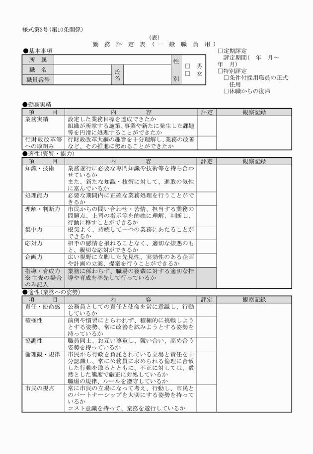 (3) 一般職員 勤務評定表(一般職員用)(様式第3号)
