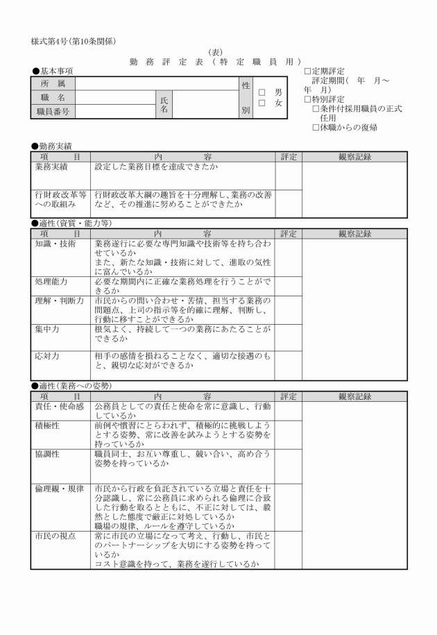 (4) 特定職員 勤務評定表(特定職員用)(様式第4号)