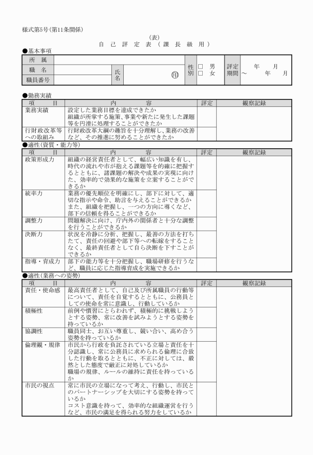 (1) 課長級 自己評定表(課長級用)(様式第5号)