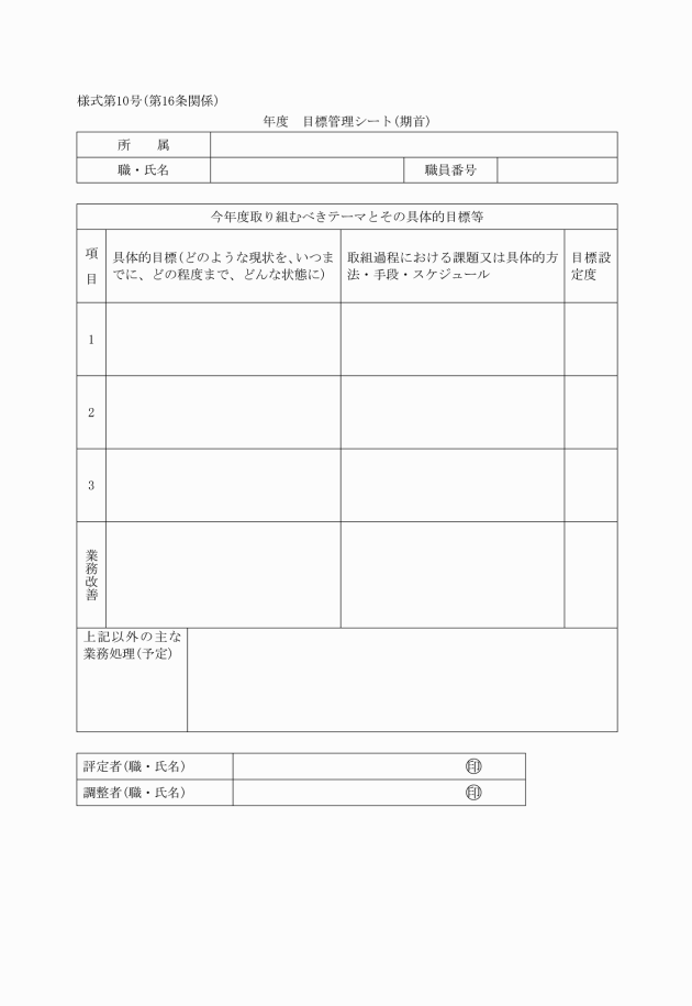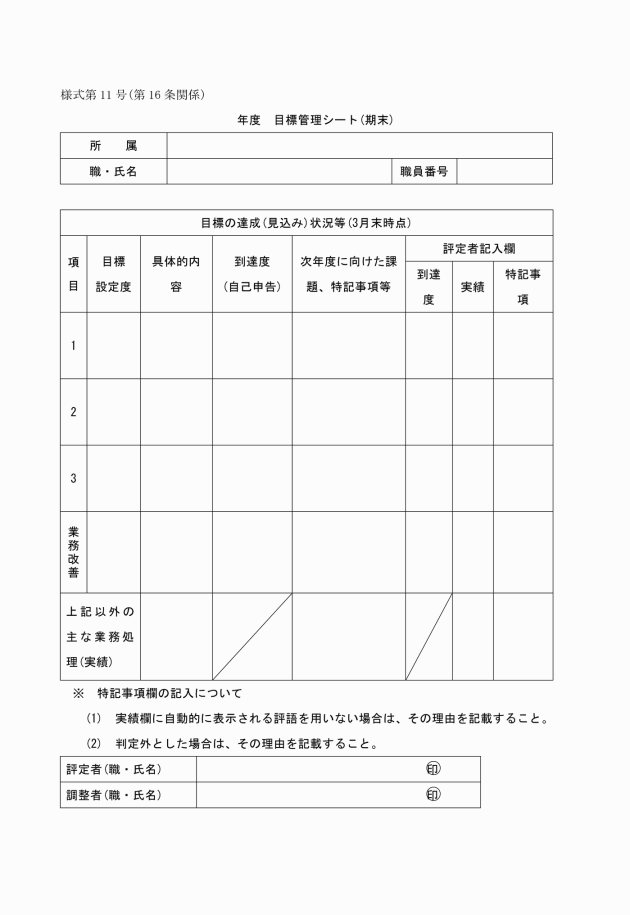 2 評定者及び直属の上司は、被評定者の年度目標の達成に向けて指導、助言及び支援を行うものとする。